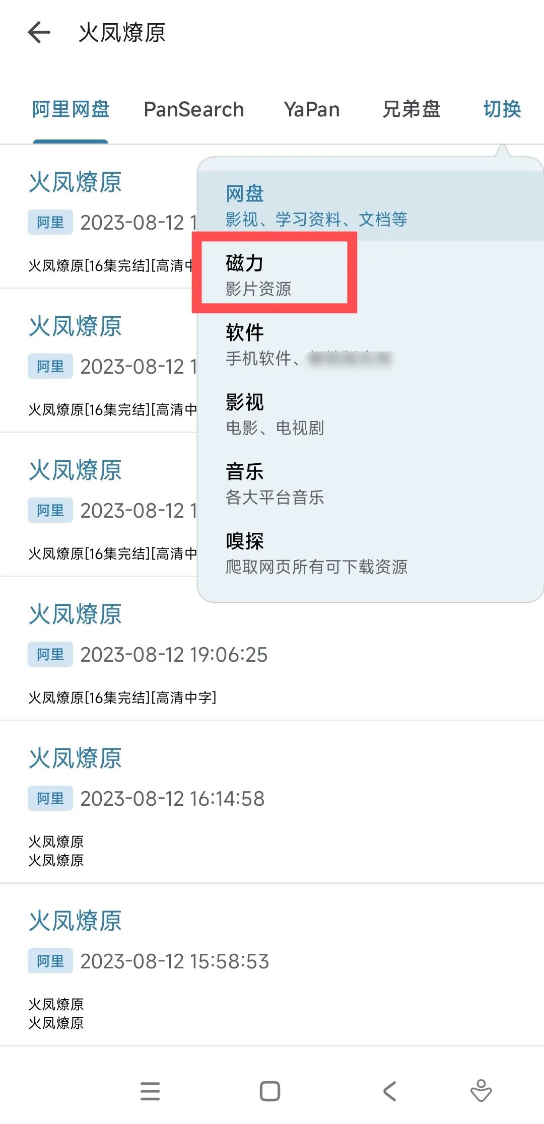 这还没完,我们点击右上角的切换,可以一键切换到磁力,再来瞧瞧: