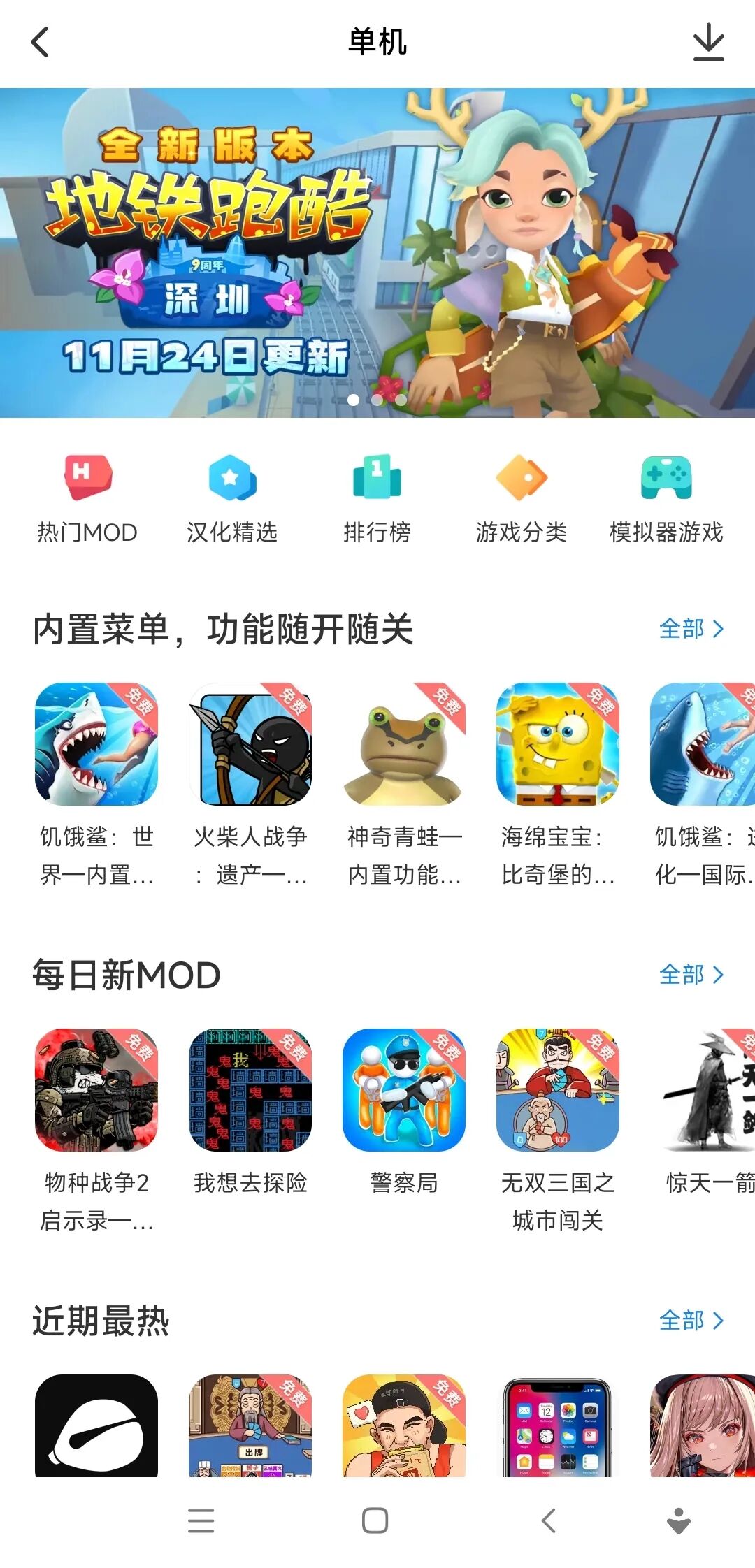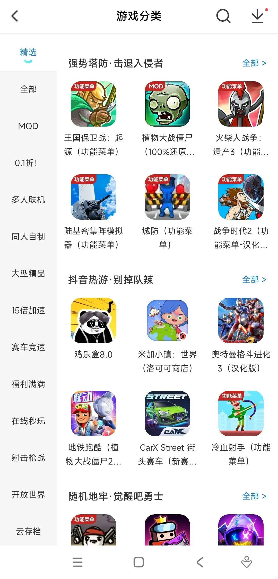 由于单机游戏非常多,软件甚至还进行了归类,也就是这个精选分类,大家不妨自行探索:
