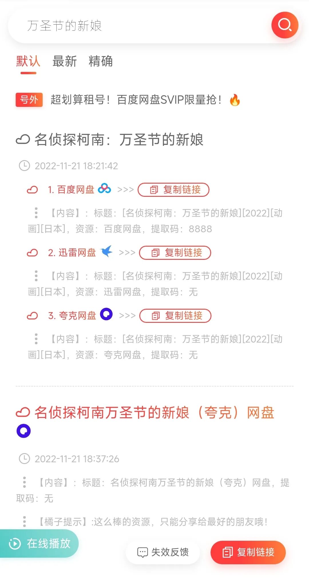 橘子盘搜,这是一个极为好用的网盘资源搜索引擎网站,支持的网盘类型,也非常全面,包括且不限于:百度网盘、阿里云盘、迅雷云盘、夸克网盘等,更同时适用电脑、手机、平板,可以说是妥妥的网盘搜索神器。