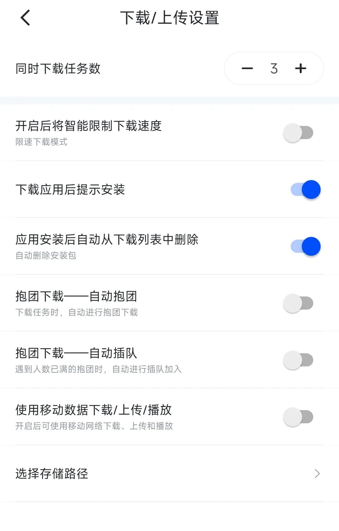 除此之外,在设置里,我们还可以调整软件下载、上传的速度等等。