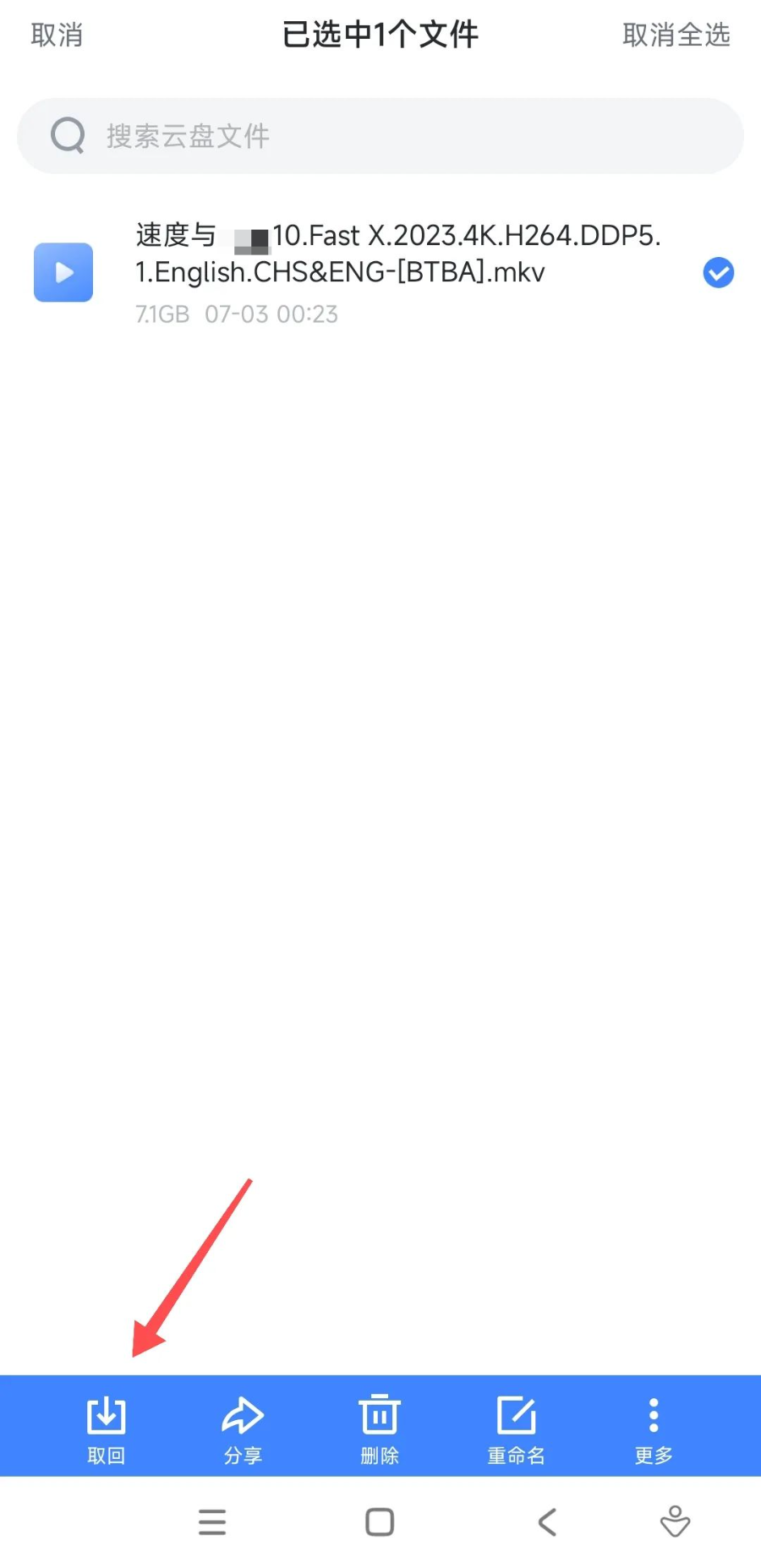 如果你想把资源下到手机里,也很简单,勾选对应内容后,点击左下角取回,就可以了。