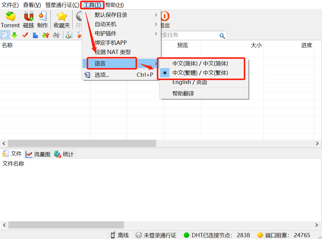 点击左上角的文件,可以看到,它同时支持种子、磁力以及直链。