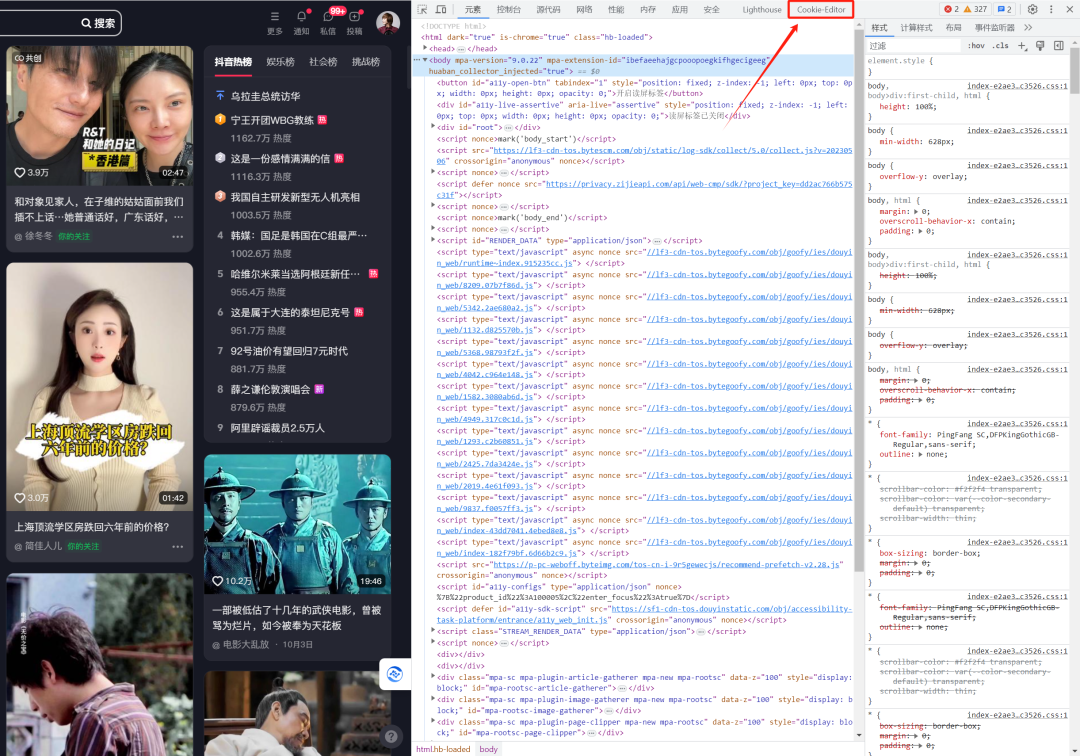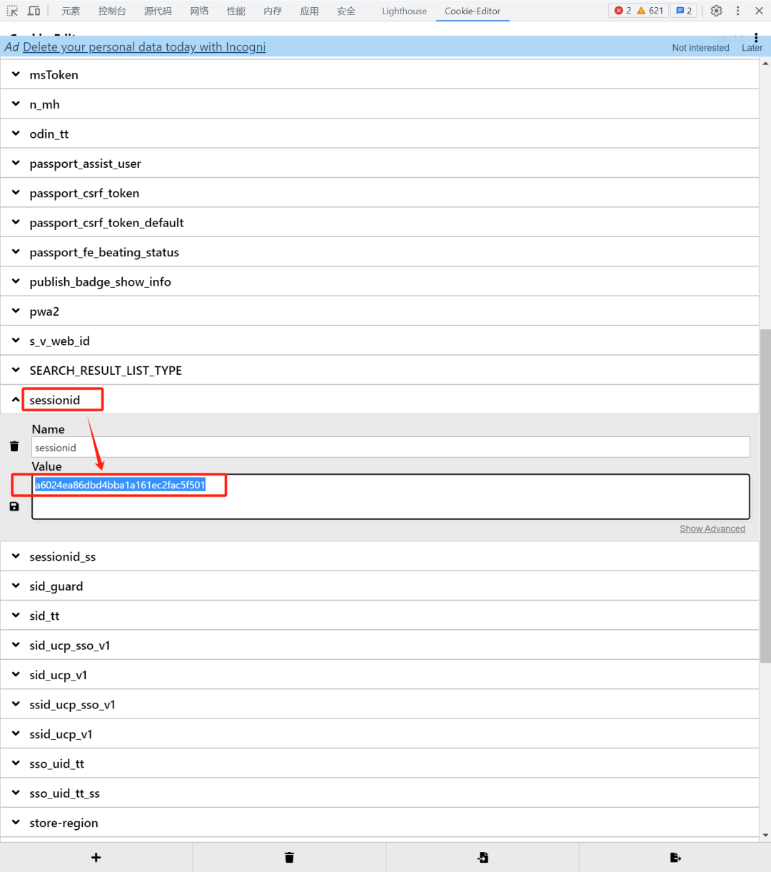 然后,按下F12,启用开发者模式,并点击右上角的Cookie-Editor。