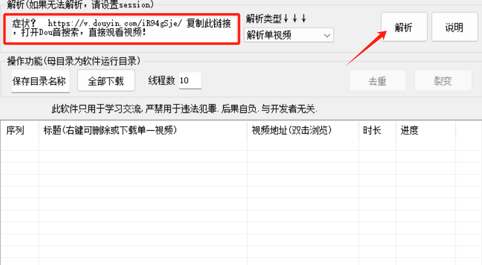 将其粘贴到软件的解析栏,并点击右方的解析按钮。