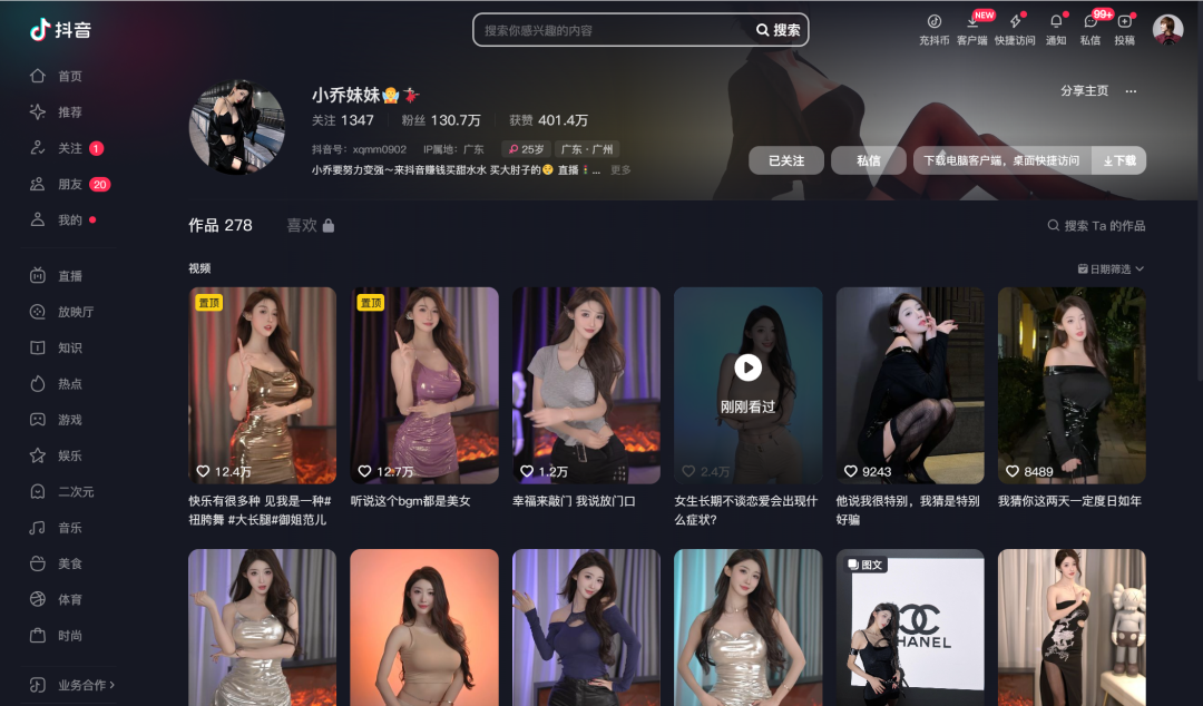 我们可以把它理解为浏览识别码,那么如何获取呢?首先,我们打开抖音网页版,然后登录自己的账号:
