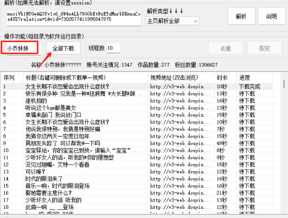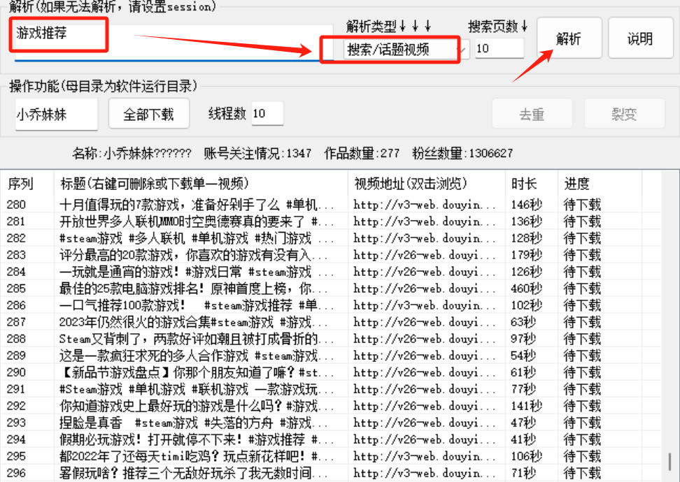 然而,对于如何下载这些精彩视频,尤其还是一键批量采集下载,甚至是无水印的,大家始终存有疑问,虽然刺客之前也为大家分享过不少同类工具,但最近似乎都不怎么好用了,要么解析失败,要么下载失败,令人苦不堪言....