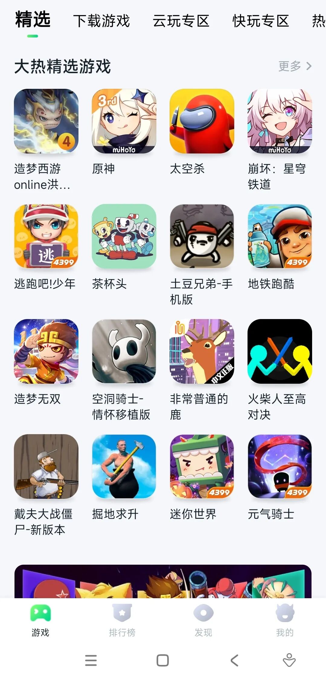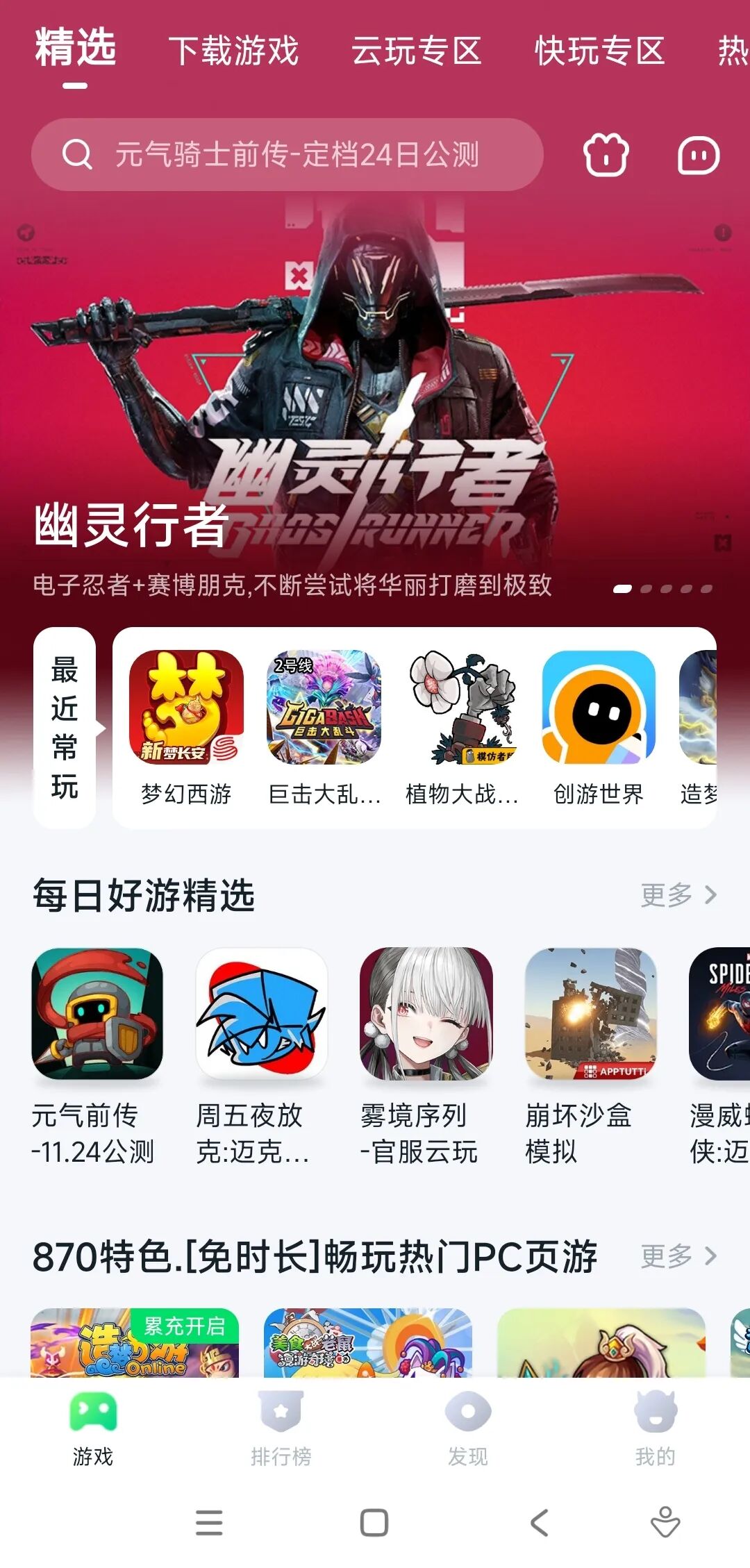 870游戏,这应该算是刺客自格来云之后,用过最好没有之一的云游戏软件APP!首先它是真正意义上的全机种收录!包含且不限于:电脑、游戏机、掌机上的所有单机联机网络游戏,当然了,也包括各类手游,最重要的,是它完全免费,不限时长!无需高端配置,即可畅玩所有游戏!