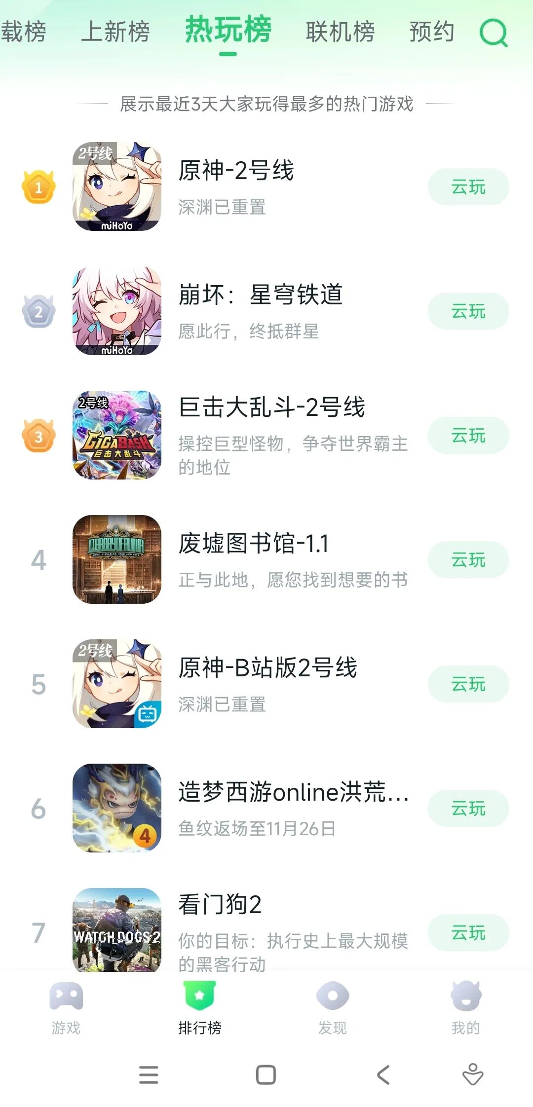 另外,我们也可以点击底部的排行榜,这里可以看到热门的游戏榜单。