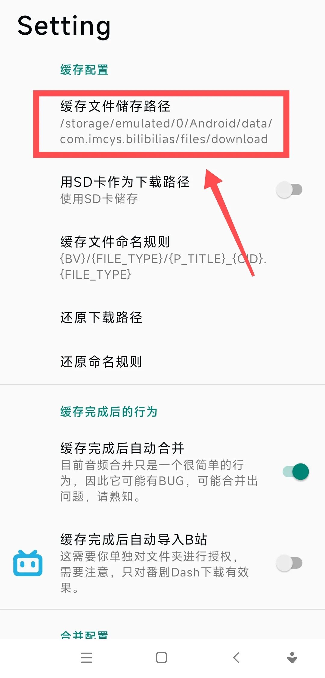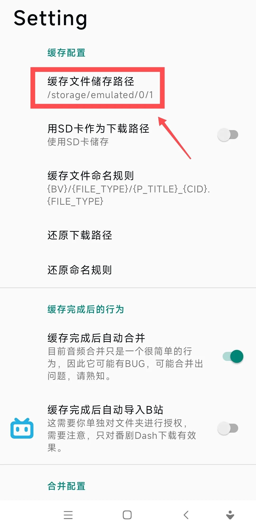 默认存储路径比较复杂,下载后不好找,所以我们点击缓存配置。