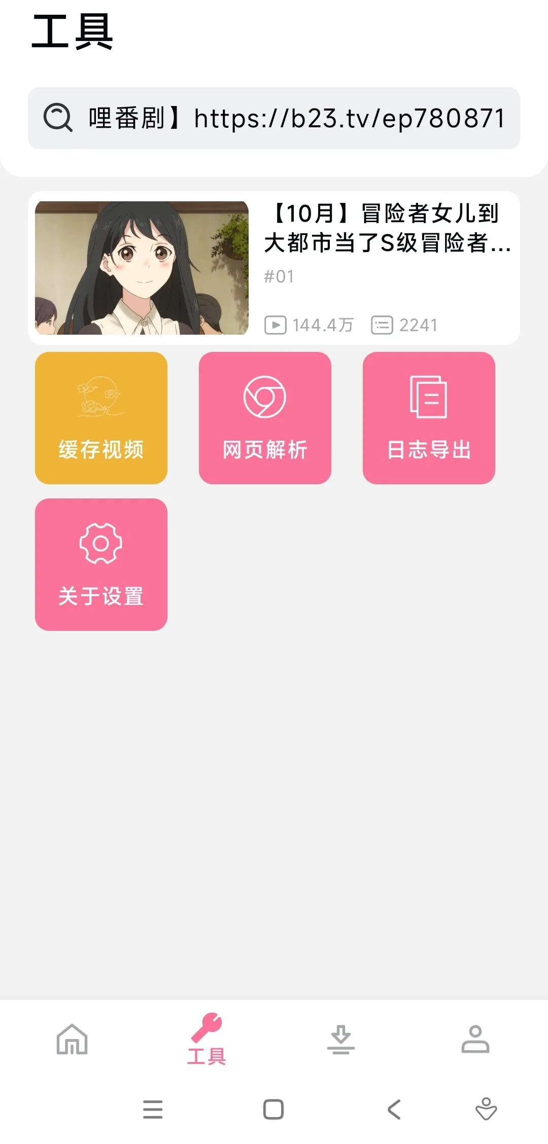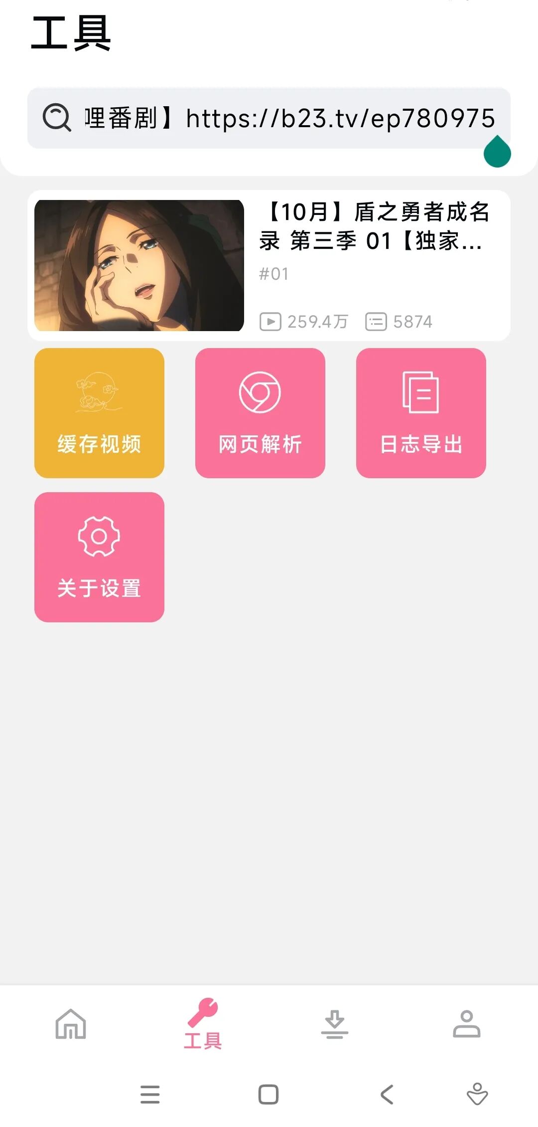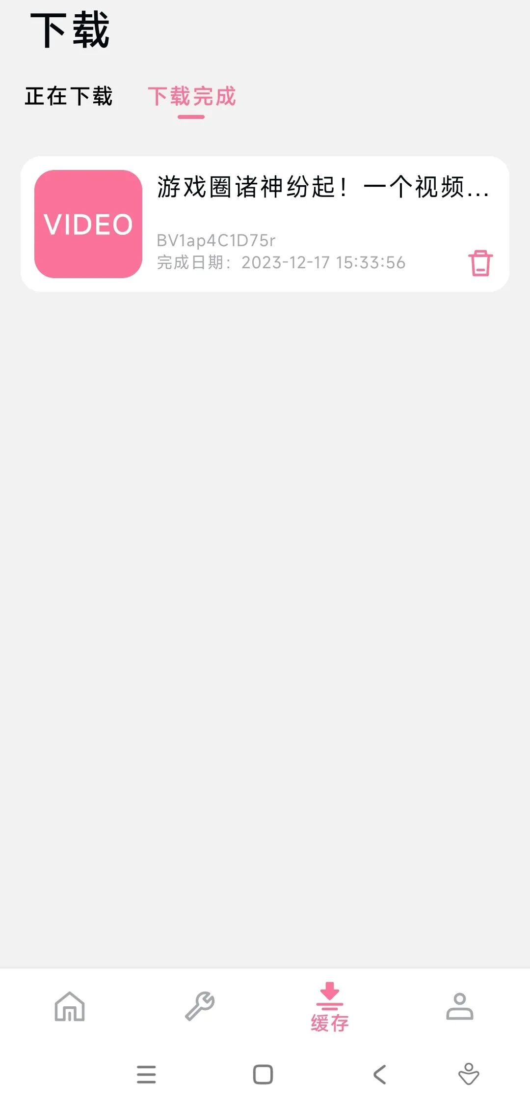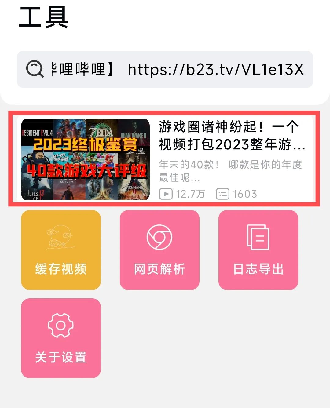 返回今天的软件,在顶部输入框里将链接粘贴进去,并点击下方的缓存视频。