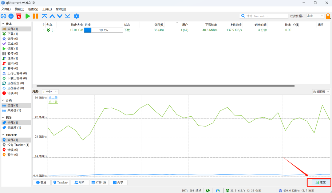 我们点击右下角的速度,甚至可以看到,每分钟的实时速度曲线图。