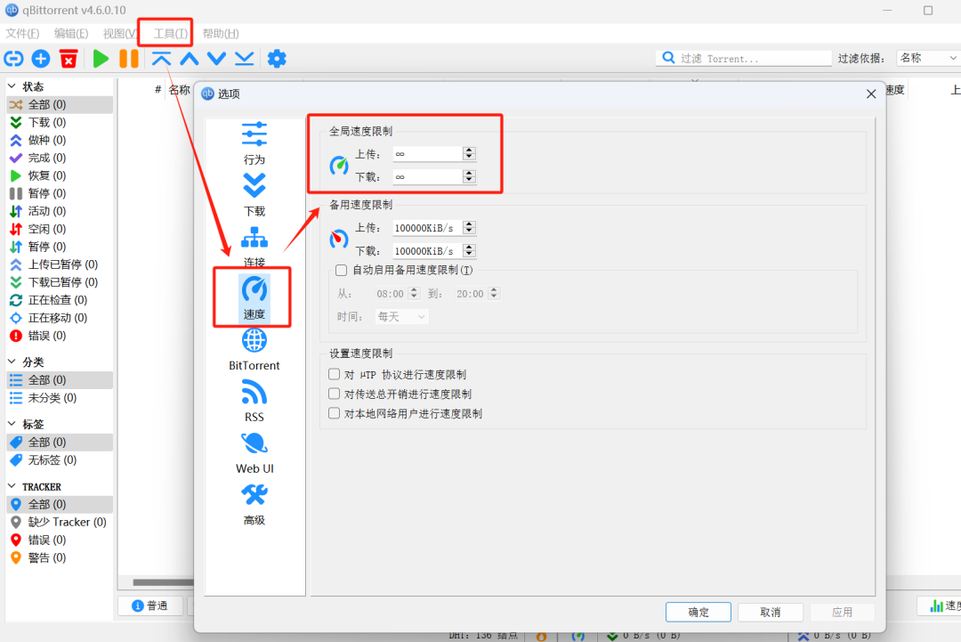 在使用前,建议大家先去工具里,将速度限制这一块,全部设置为无。