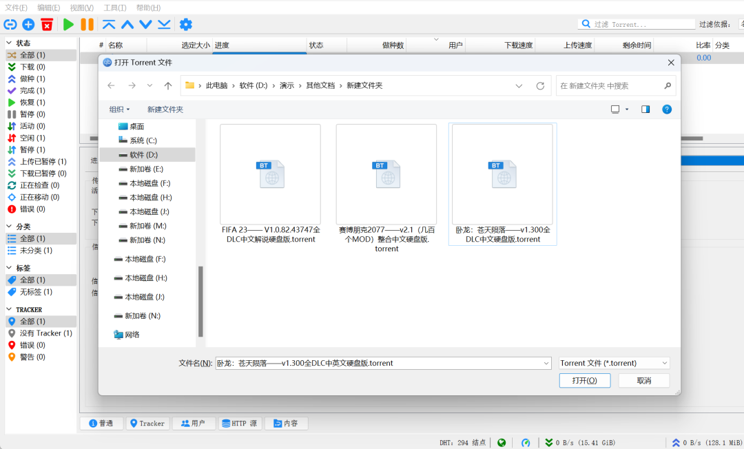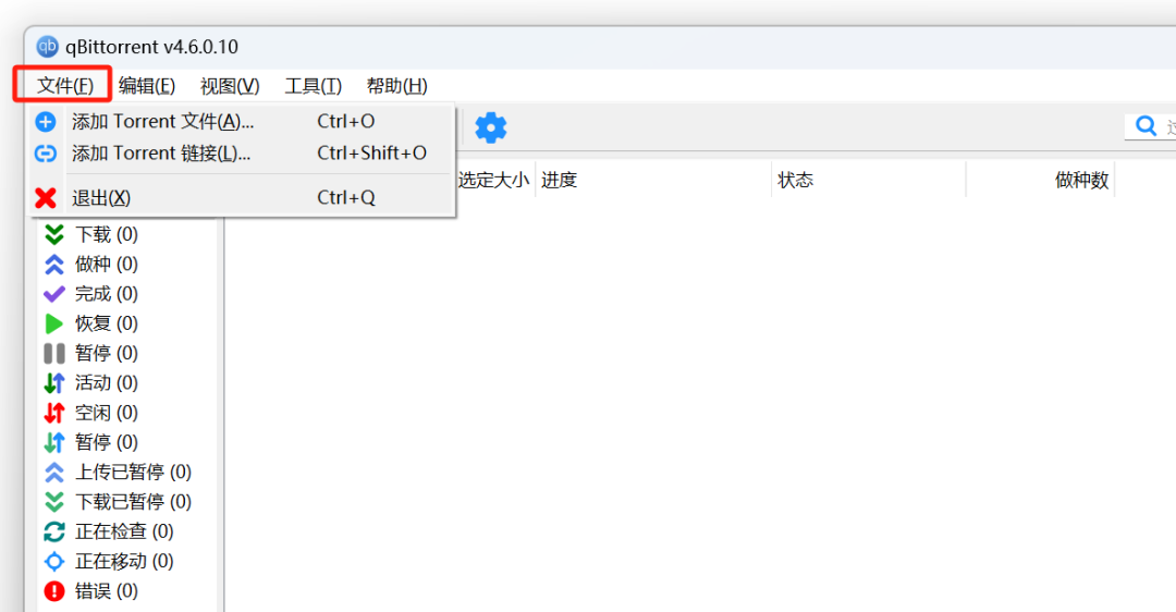 具体使用也很简单,点击左上角的文件,可以看到分别对应了种子文件和磁力链接。