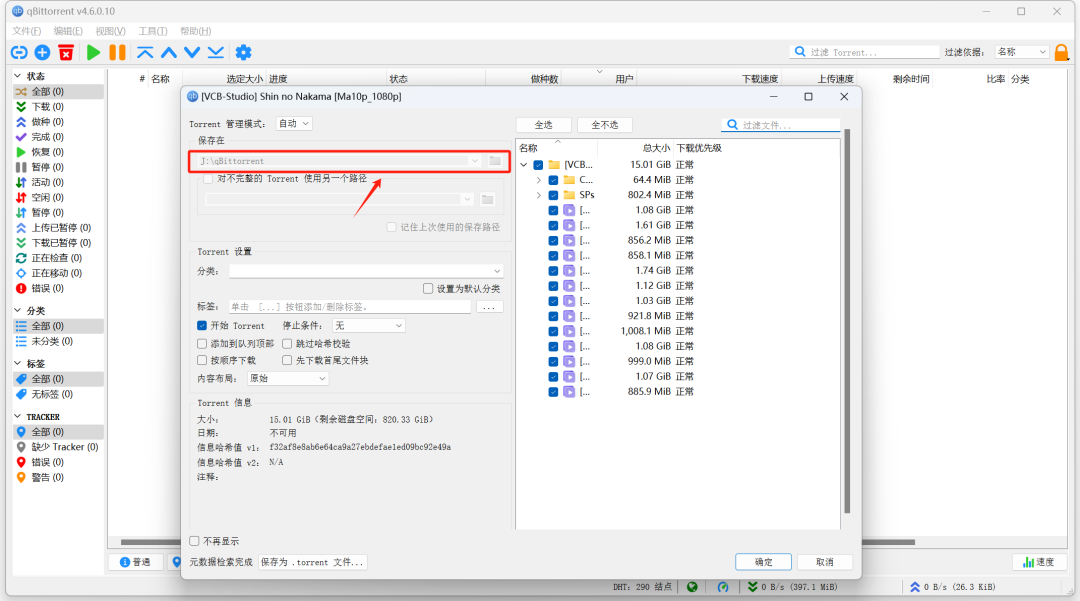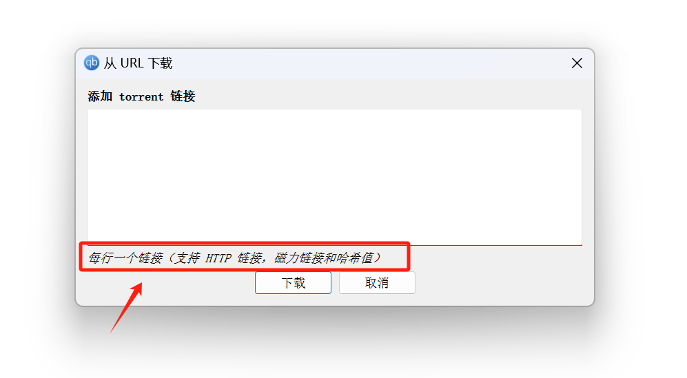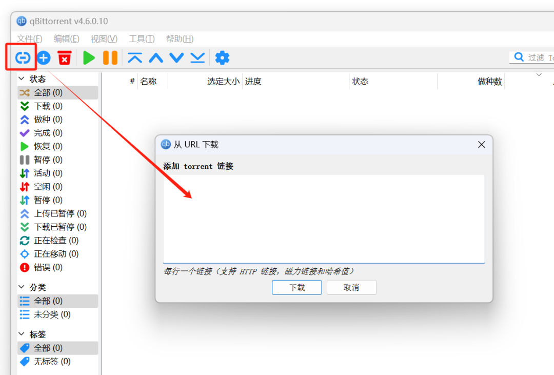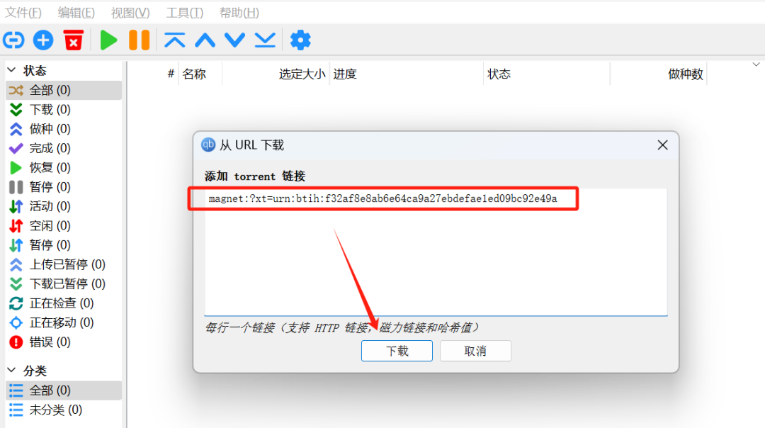 然后,将相应的磁力链接粘贴到对话框中,并点击下载。