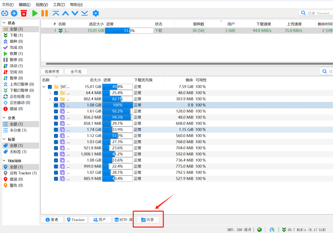 点击底部的内容,可以看到具体文件的下载进度。