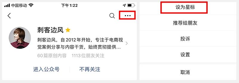 再点击右上角「...」→点击「设为星标」