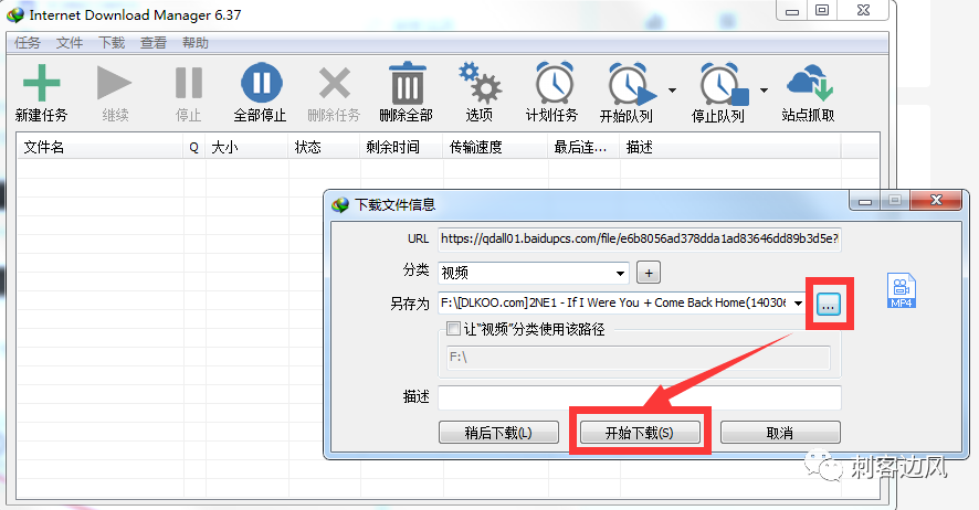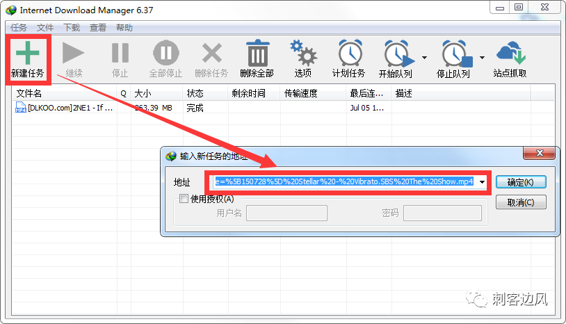 然后打开IDM,点击「新建任务」,粘贴刚刚得到的地址