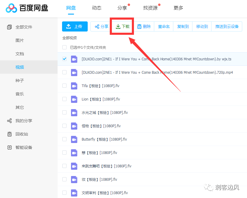先看效果,刺客专门使用一个非会员账号,首先在浏览器中登录百度网盘(不是客户端),选中需要下载的文件,其上方就会多出来一个绿色的下载按钮。