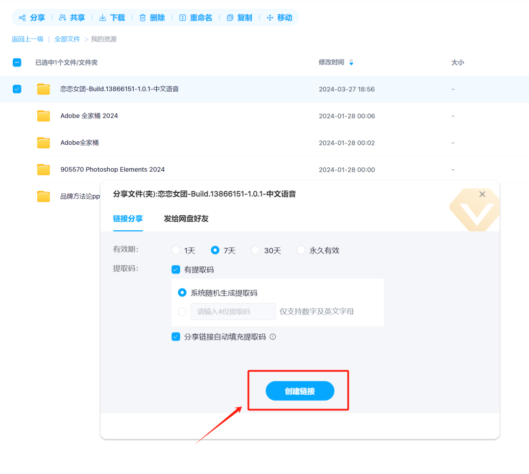 比如刺客网盘里的这个文件,点击分享之后,创建链接。