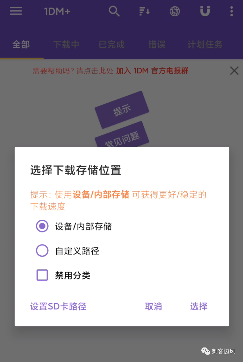 之后就是第二步,设置下载存储位置,这里可以使用默认内部存储,也可以选择自定义路径或SD卡路径,凭大家的喜好了。