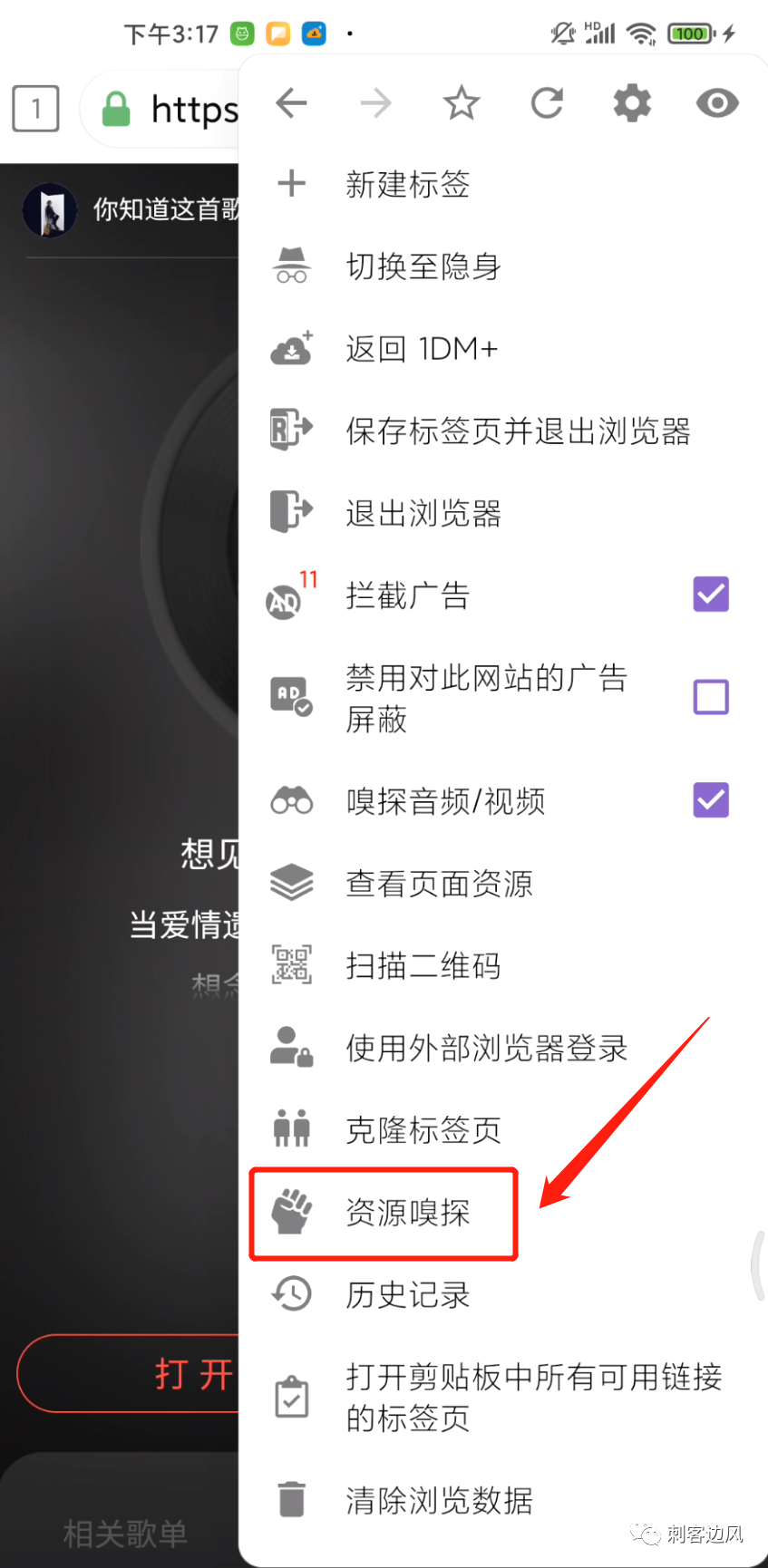 除此之外,软件更内置了嗅探功能,能自由下载音乐和视频,浏览器内置的功能其实非常强大,值得大家用心钻研:
