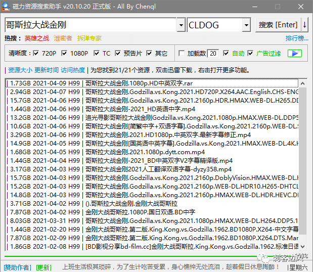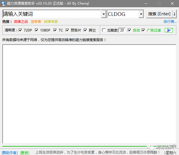 磁力资源搜索助手,这是一款能够搜索全网资源的神器,逻辑和刺客之前分享的百度网盘搜索工具差不多,不过这次针对的是磁力和种子,总之就是好用!