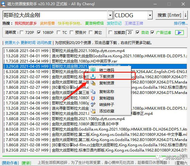 下载并安装好迅雷后,回到今天的软件,对着列表里的资源按鼠标右键,勾选下载资源即可: