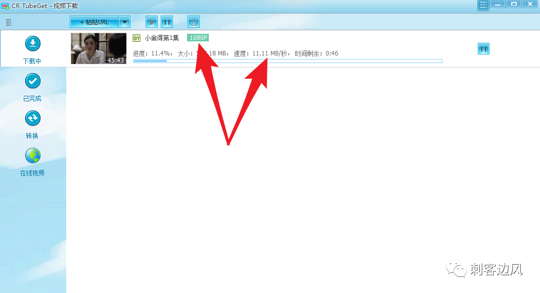 即便是最高画质,下载速度也十分喜人,妥妥的10Mb/s,即便是多个任务同时运行,速度依然不受影响,流弊。