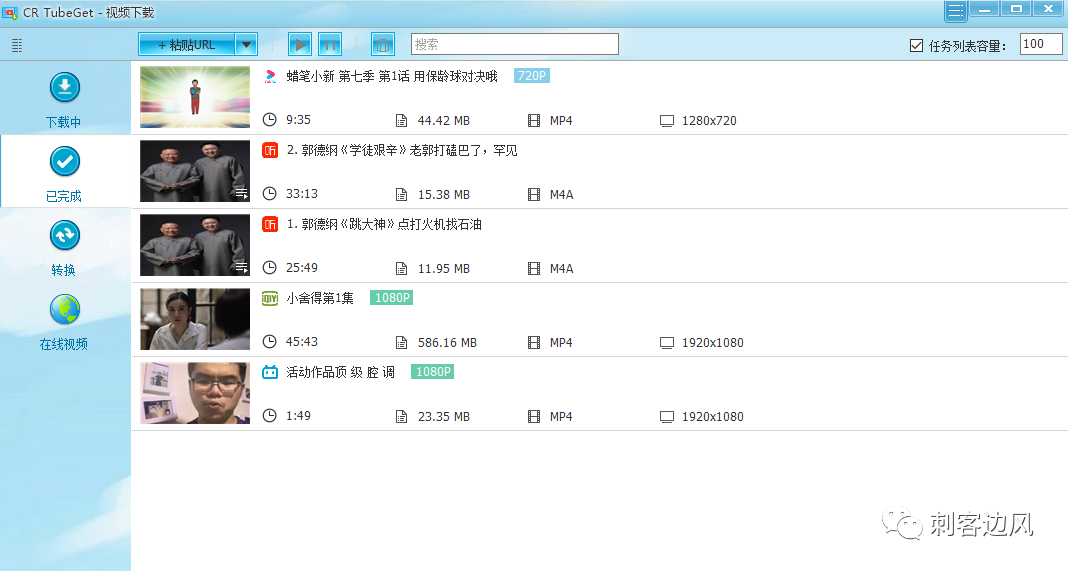最后,左侧列表中的“在线视频”,实际是一个嗅探功能,输入网址链接后,可以直接抓取下载相关资源,非常好用!总而言之这是一款集“下载”、“转换”、“嗅探”为一体的神器,小伙伴千万不要错过,也请多多支持刺客。