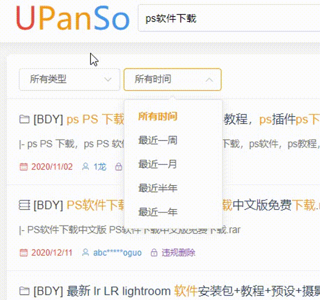 我们甚至可以精确的筛分:百度网盘或者蓝奏云,并能根据时间找到最新的内容。
