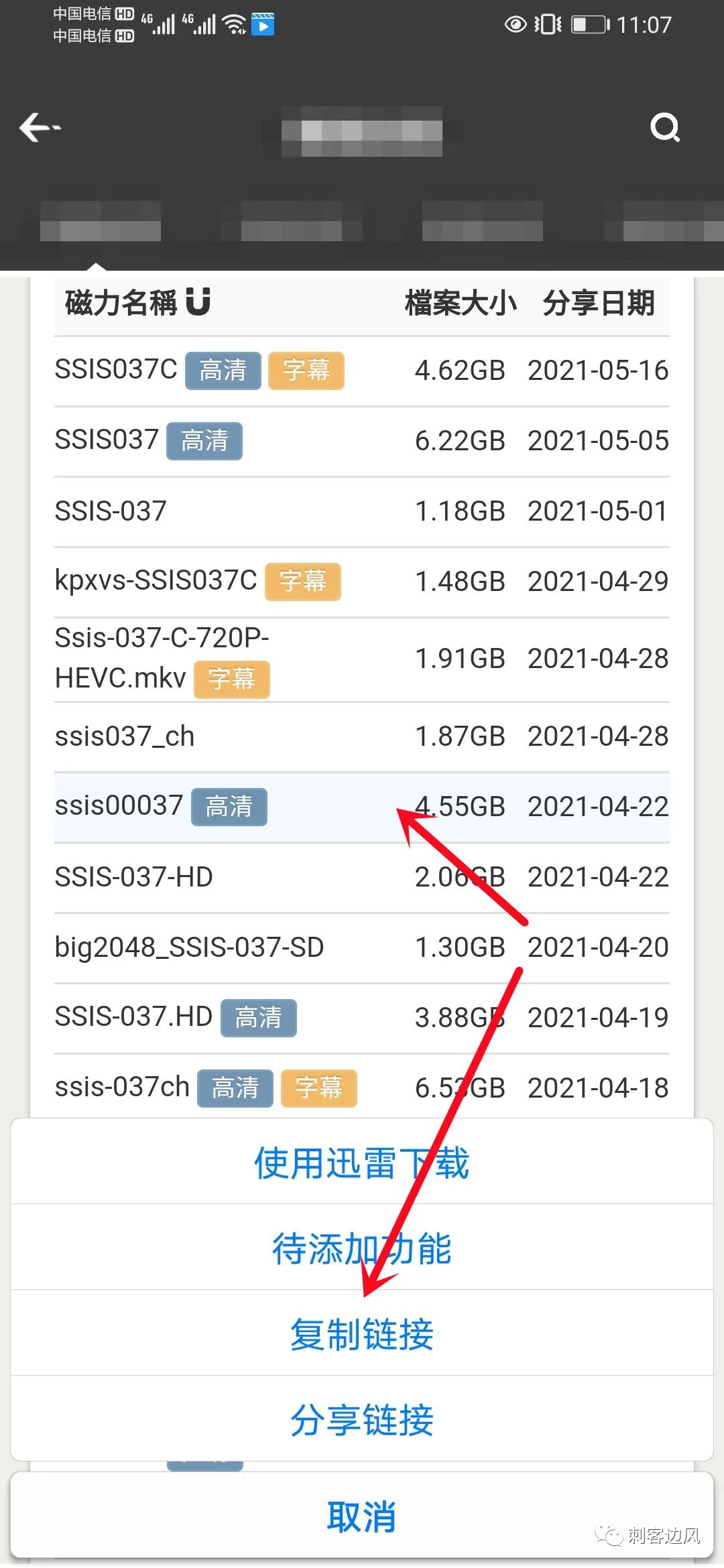 直接复制里面番号对应的磁力链接即可:
