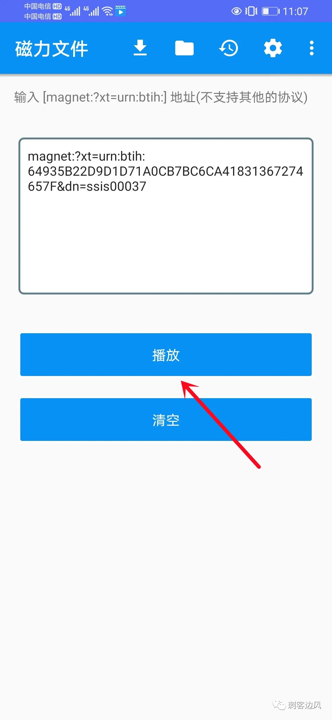 然后把复制好的链接,粘贴到磁力文件中,就可以进行在线播放操作了: