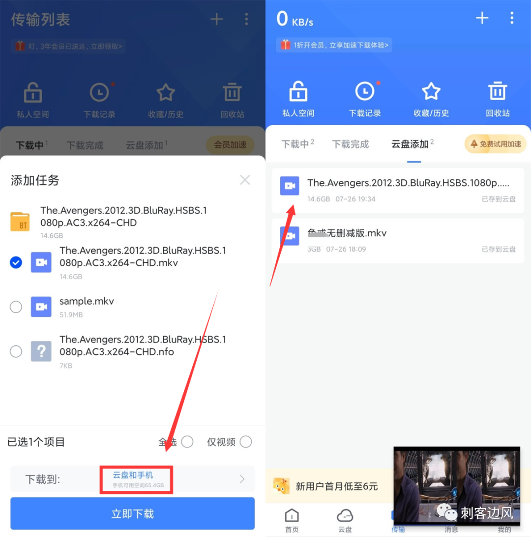 一键保存到云盘,再点击立即下载,你们会发出“哇塞”的呼声,十几GB的资源,仅仅几秒钟就搞定了。