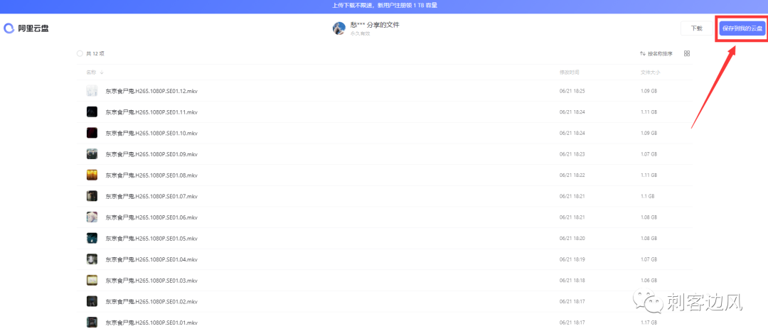 在弹出的小标签里,点击“打开链接”,便会自动跳转至阿里云盘,在云盘里找到右上角的“保存到我的云盘”即可,如果想直接嗨皮,就选择下载,反正都是啪的一下结束战斗,阿里云盘的下载速度,就一个字:“绝”。