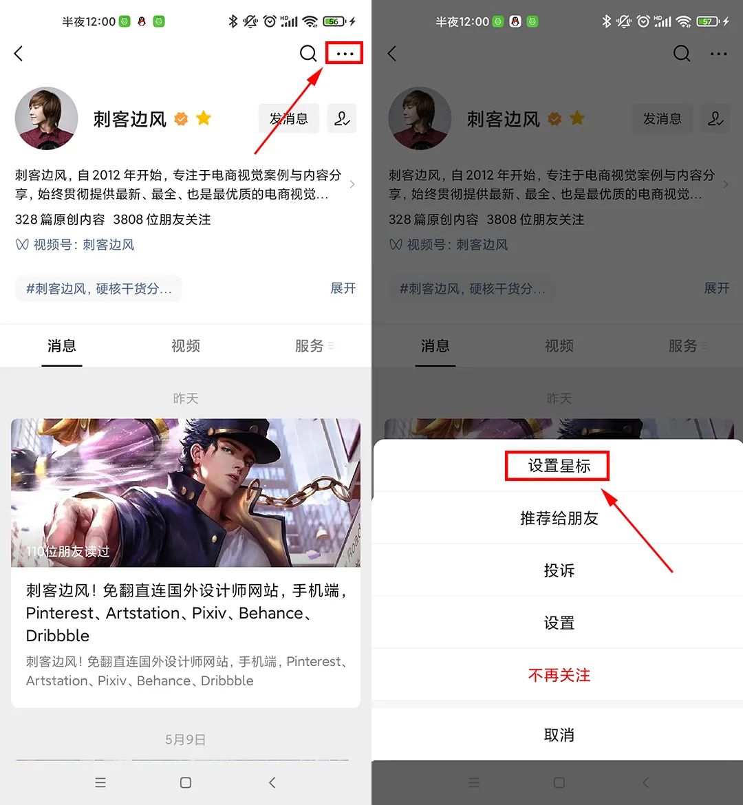 小伙伴们注意:公众号的推送机制不再按照时间前后推送了,老朋友们都知道刺客每晚22点35分准时推送。但微信公众号信息流乱序,不少人还是错过了干货。刺客建议大家把公众号置顶(设为星标★),以便第一时间看到推送,方法如下图: