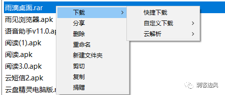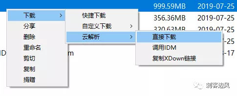对着资源,按鼠标右键,选择云解析,之后选择直接下载。