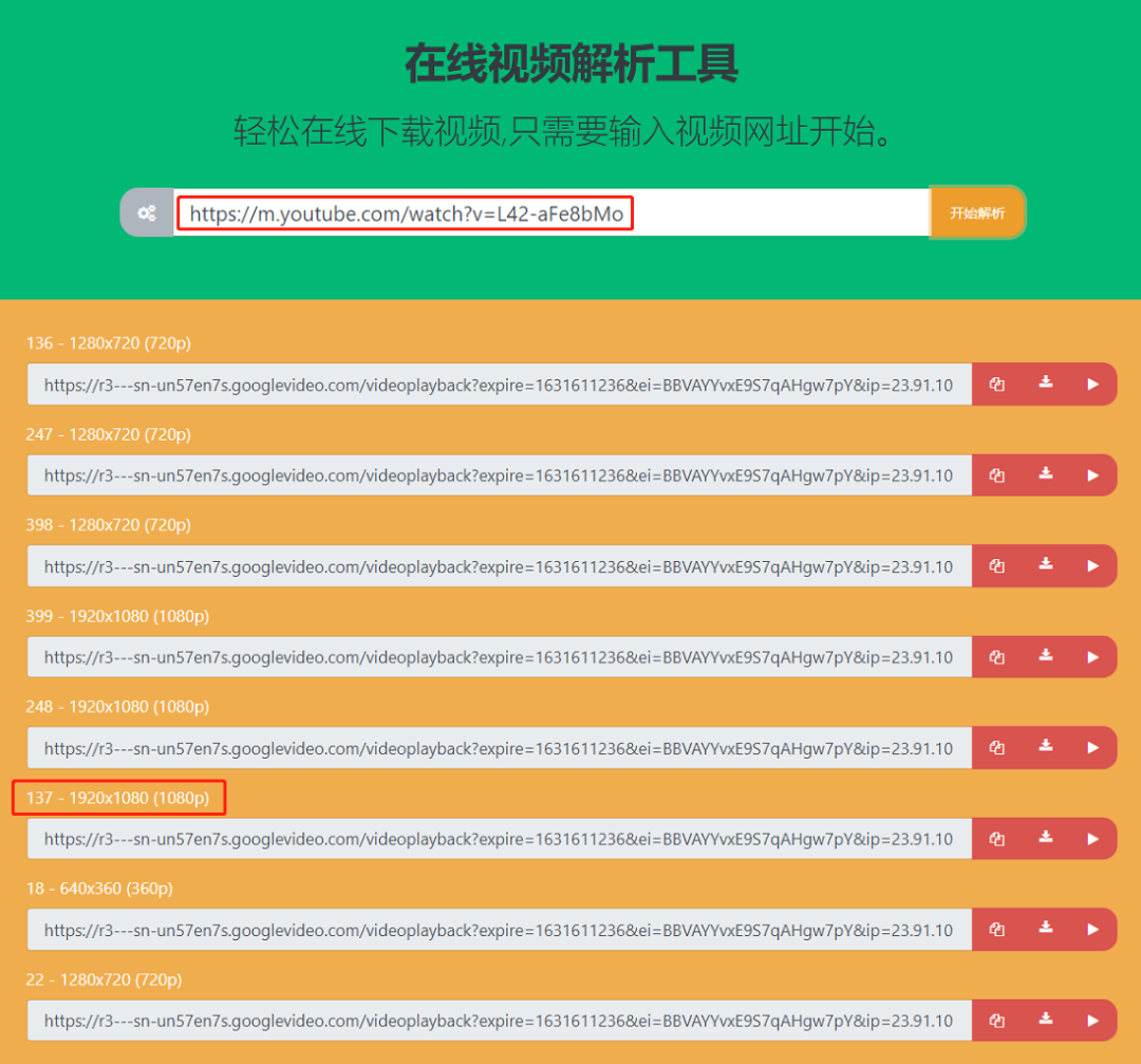 相信大家看到这个界面,就知道怎么用了,逻辑其实也很简单:复制相关视频链接直接怼到输入框里就可以解析了。