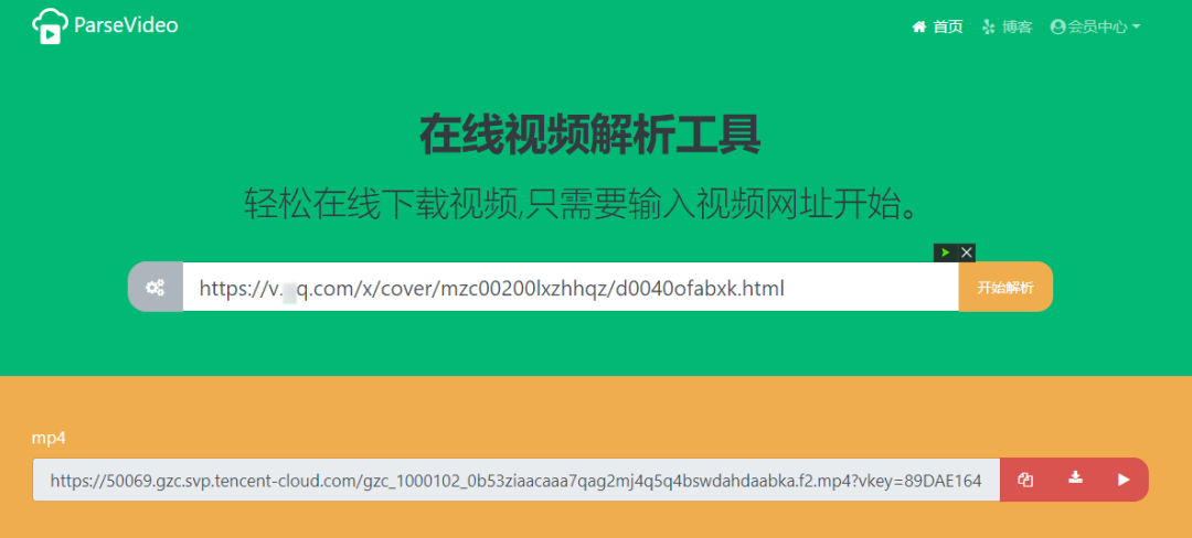 然后回到今天的网站,直接将链接贴进去,点击“开始解析”: