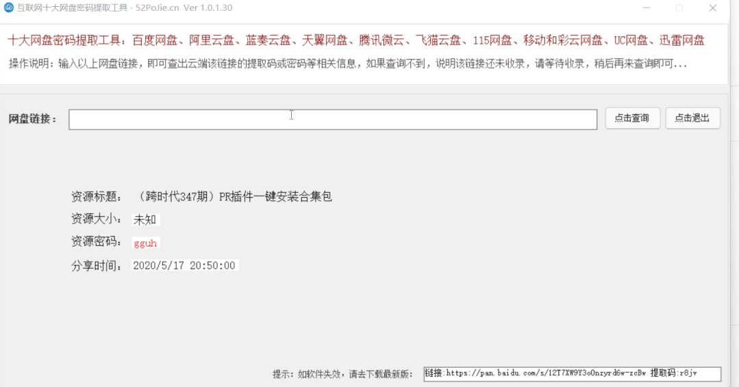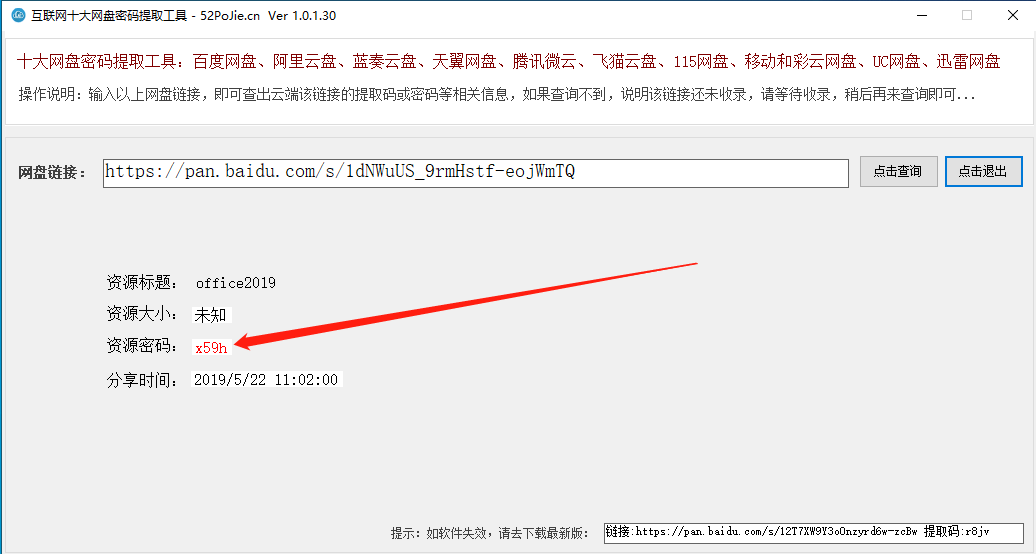 但功能却是极为强大,仅仅只需要输入网盘分享链接,即可查询到相应提取码:
