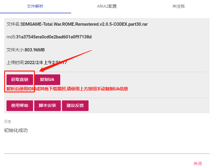 到这步,先别急着去下载,这里有个非常非常重要的步骤!需要特别注意,如果遗漏将会直接导致失败,我们先点击左侧的“获取直链”: