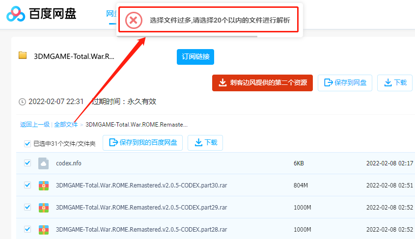不过此功能目前仍在完善当中,刺客自己于实际测试中未能成功,也欢迎大家自行研究尝试,顺带一提的是,批量下载的文件,不能超过20个: