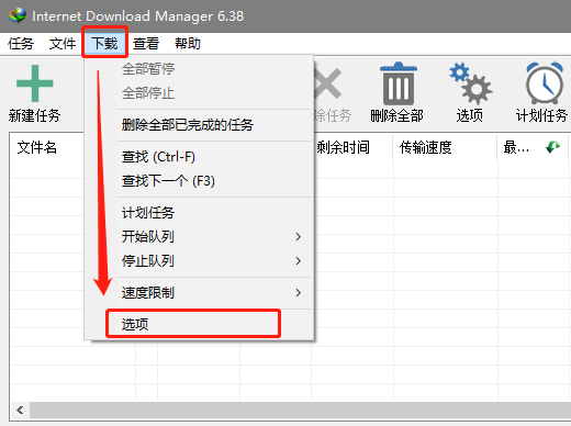 再打开IDM顶部工具栏中的下载,找到选项进入:
