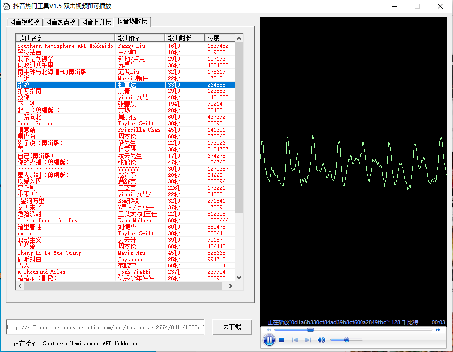抖音热门工具,这是一个专门用来查看抖音各种热门视频、热点,以及爆款歌曲的榜单抓取工具,逻辑和刺客之前分享的网络热点工具差不多,但是更加垂直、精细化: