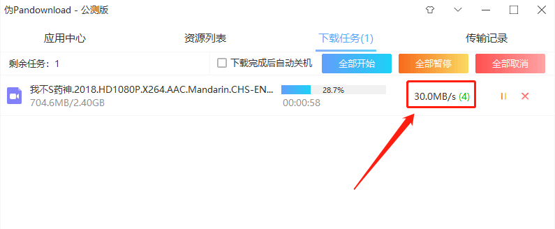 每秒30Mb/s,可以说是有图有真相,关键还非常稳定!不一会的功夫,进度条就跑差不多了: