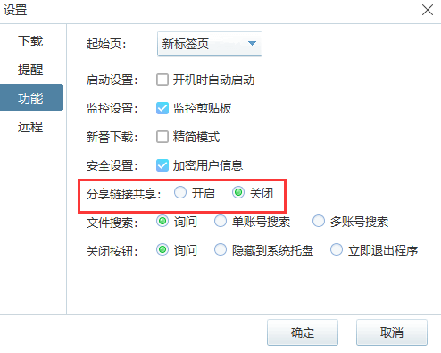 首次打开软件,它会告诉大家默认开启了分享链接共享,如果你不想开启,就先去设置里,找到功能,把分享链接共享这一项,设置成“关闭”: