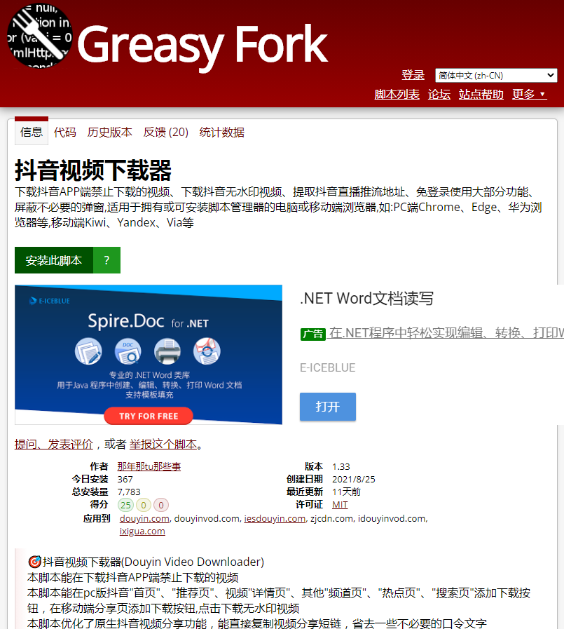 抖音视频下载器,这是一个专门用来下载抖音网页版视频的浏览器插件,如果你原本就对油猴比较了解的话,那么,接下来的内容就可以轻松驾驭了。