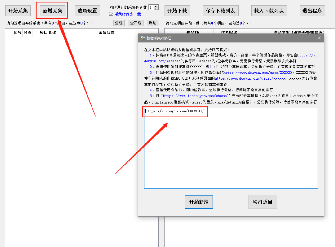 接下来就是重点了,我们回到今天的工具里,点击左上角的“新增采集”:
