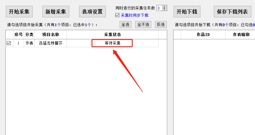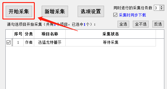 这时我们就可以点击左上方的“开始采集”来进行下一步了: