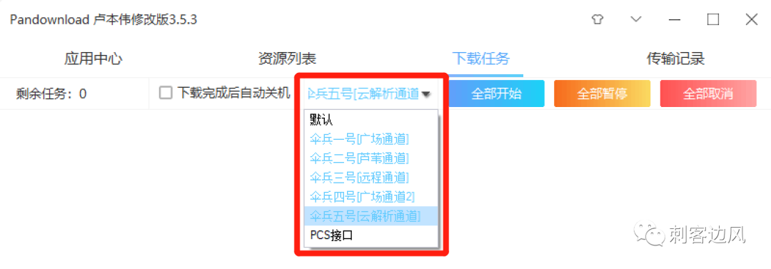 5、伞兵五号通道:没有可用账号时使用,云端解析