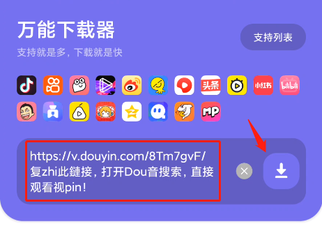 之后,返回刺客今天提供的软件,直接在搜索框里粘贴,并点击右侧“下载”即可: